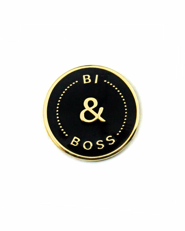 Show your pride! Bisexual (“bi”) and boss pin badge to wear, or gift.
