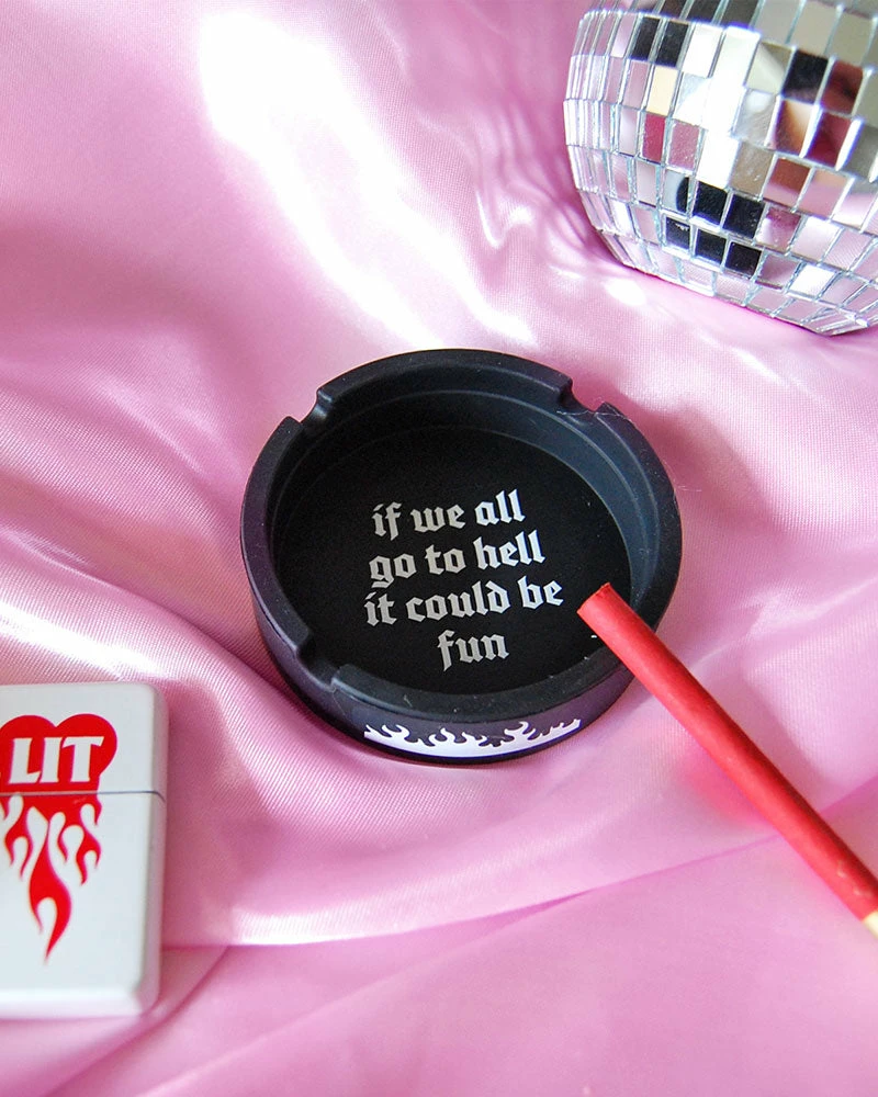 Give your smoking routine and paraphernalia some pizzaz with this retro and stylish little ash tray. If we all go to hell, it could be fun. Don’t smoke? Use it so store pins, patches, keys, and other knick knacks!