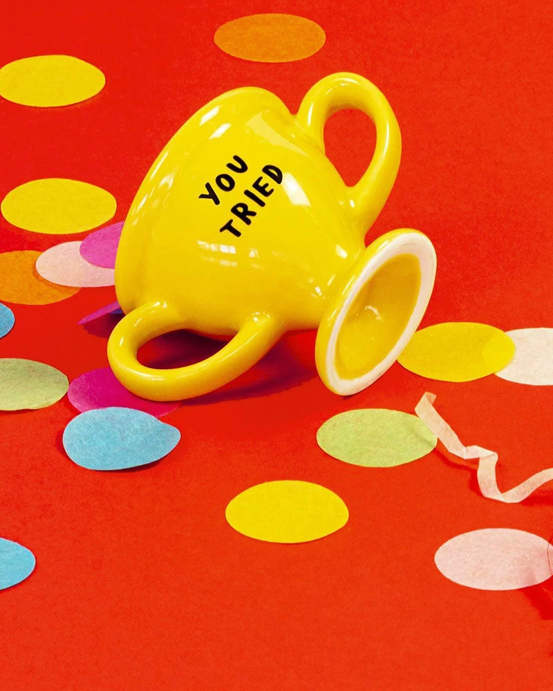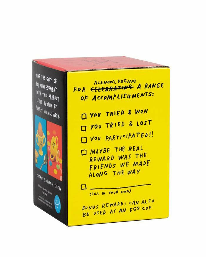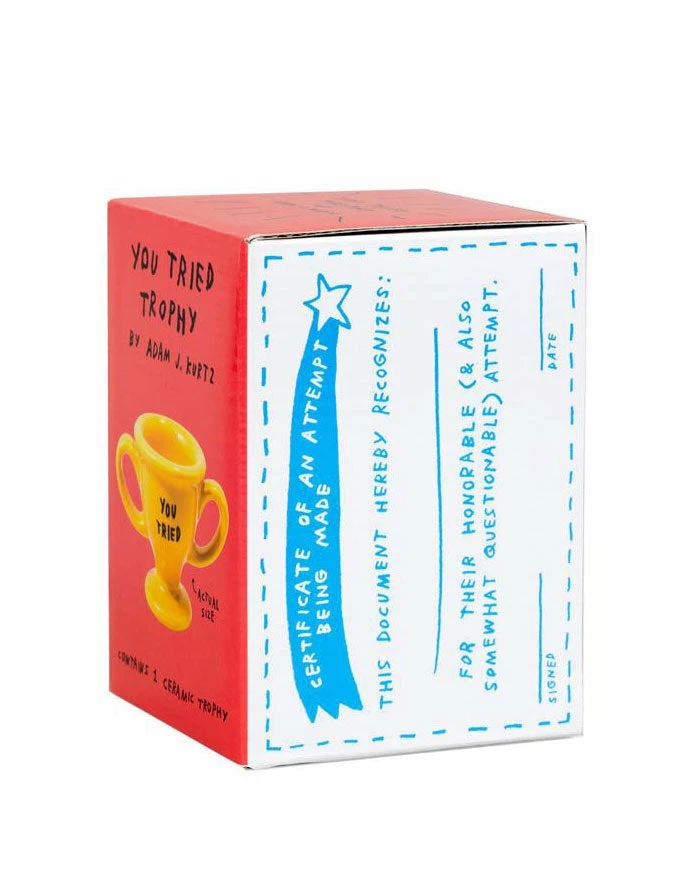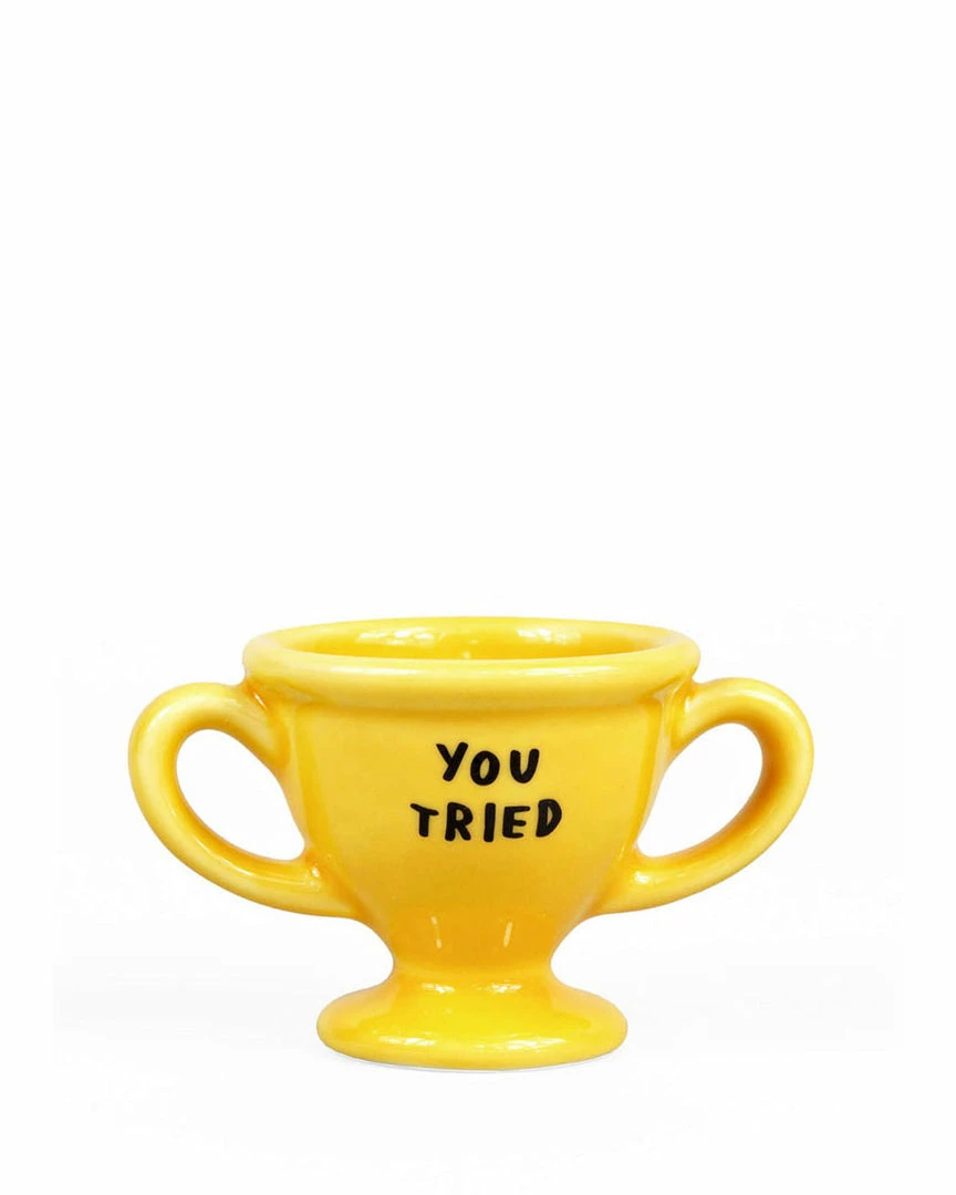 You may not have won, but at least you tried! This perfectly-sized ceramic trophy offers acknowledgment of any effort, no matter how mediocre. Smart, snarky, and a little sentimental, it’s a unique offering for just about any occasion.