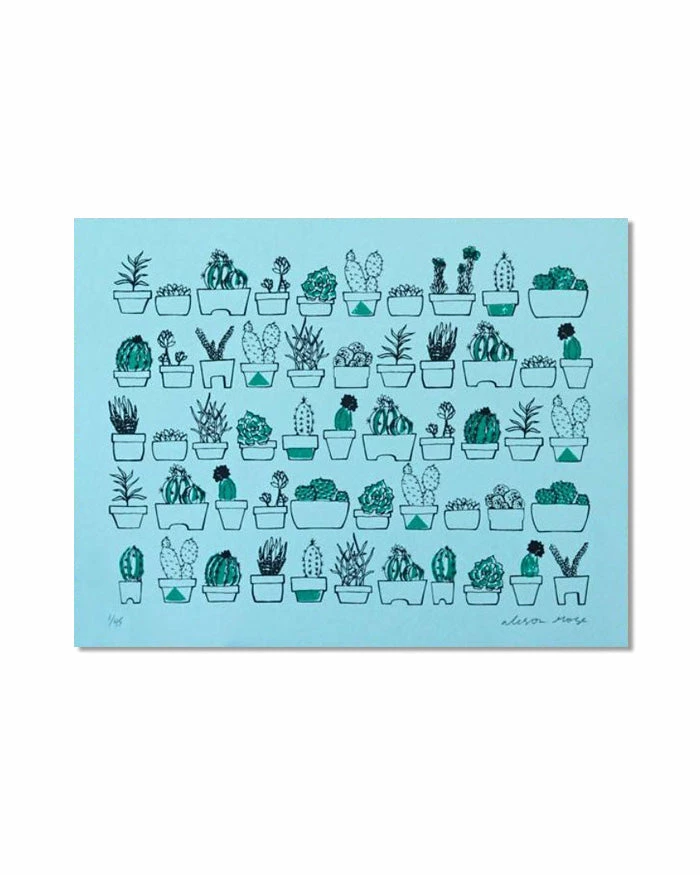 Love plants? Do you particularly love succulents? If this row upon row of potted plants remind you of a room in your house, this artist print belongs in your home, too.