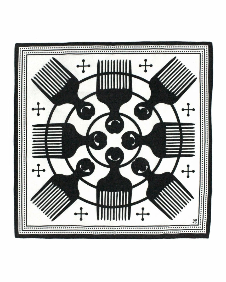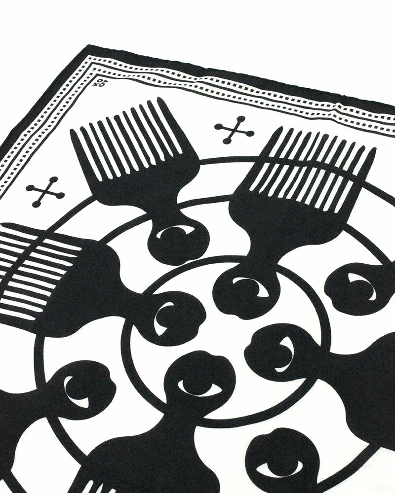 A black and white hair comb pick design. The Adinkra symbol for beauty is ‘D’uafe’ which is a comb with an eye. It’s a representation of beauty being in the eye of the beholder, as well as an affirmation that you can choose how you see and respect your own beauty and power.