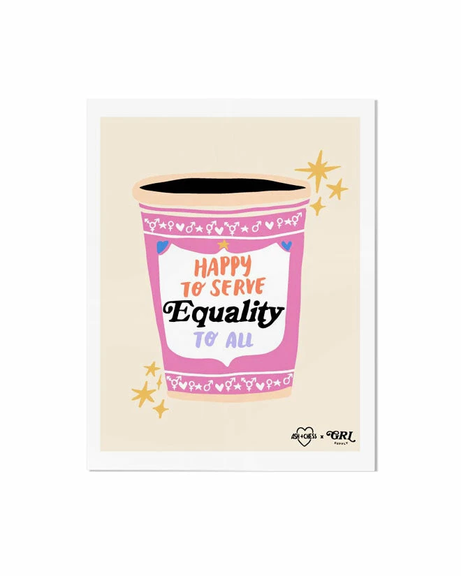 Happy to serve equality to all. A cute art print twisting the classic New York coffee cup design into something for lovers of both coffee and equal rights.
