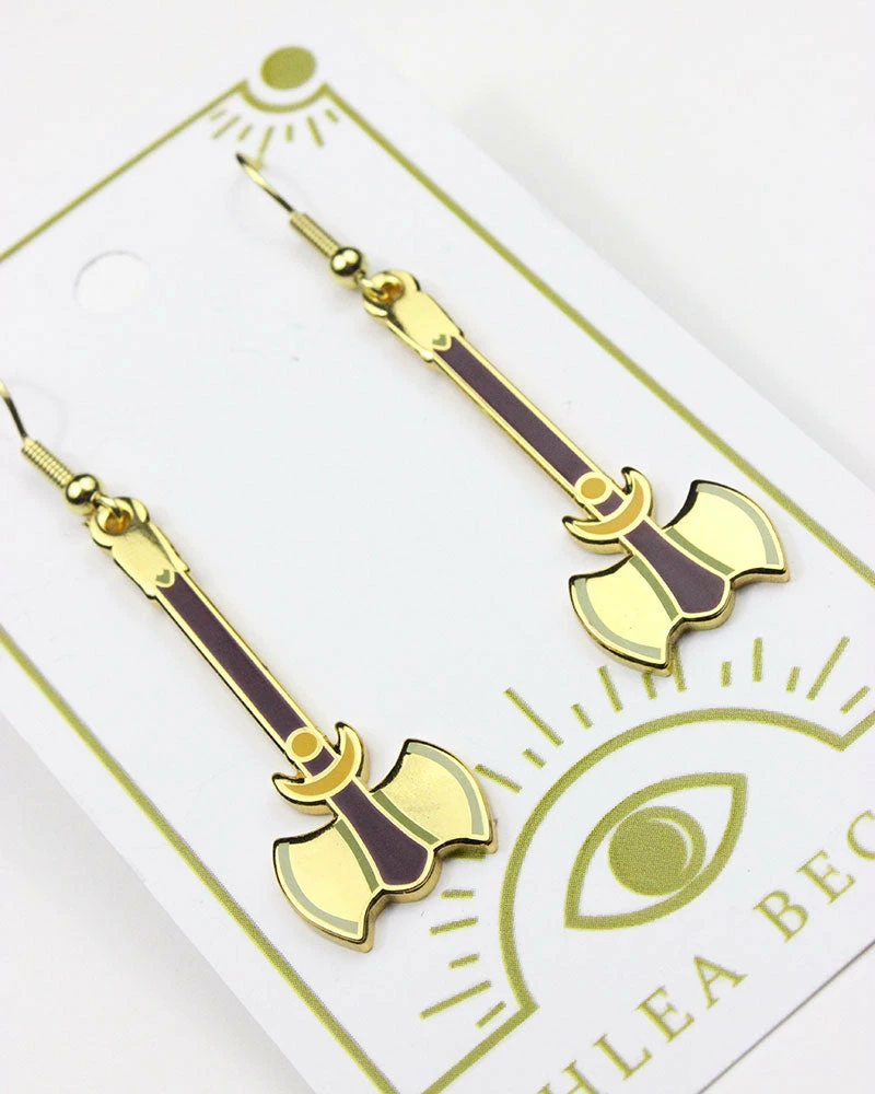 On your way to kill a giant, or just need extra protection? These badass double-sided axe earrings will guide you through the night, equipped with crescent moons. They’ll enhance any outfit, plus your strength will go up +100,000!