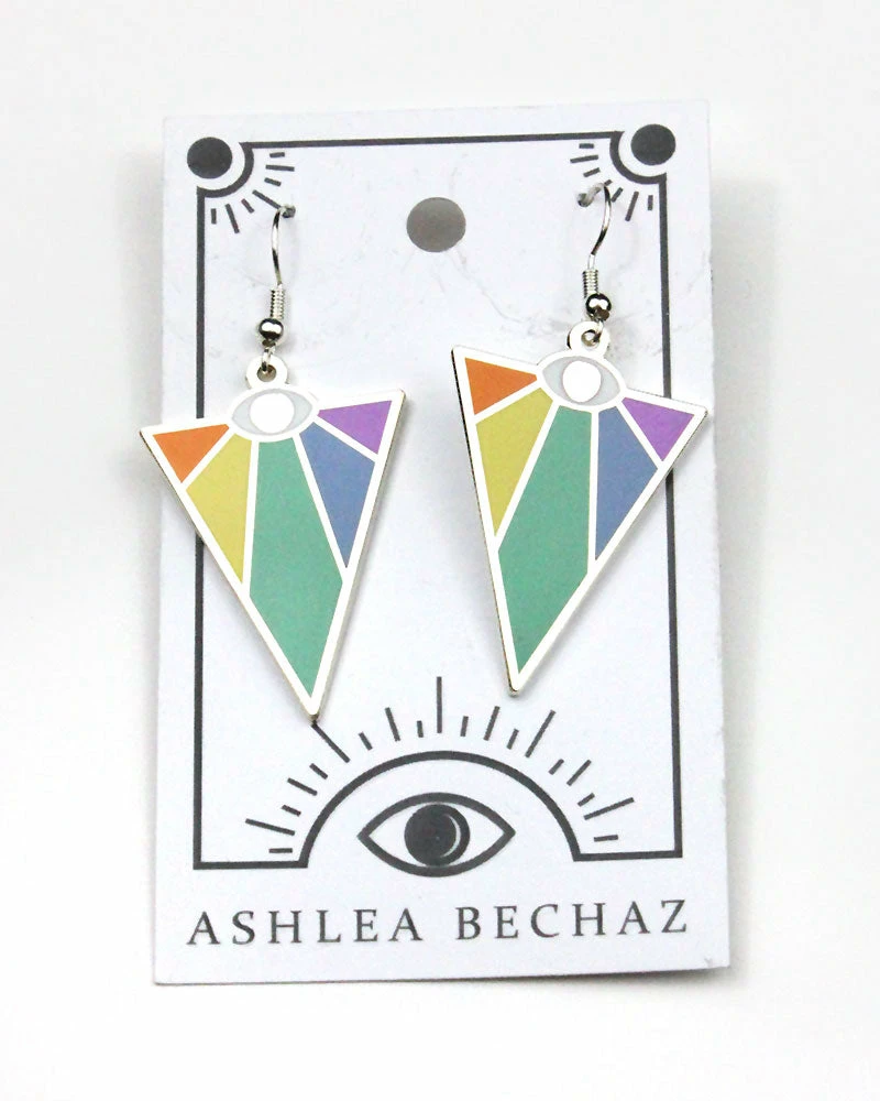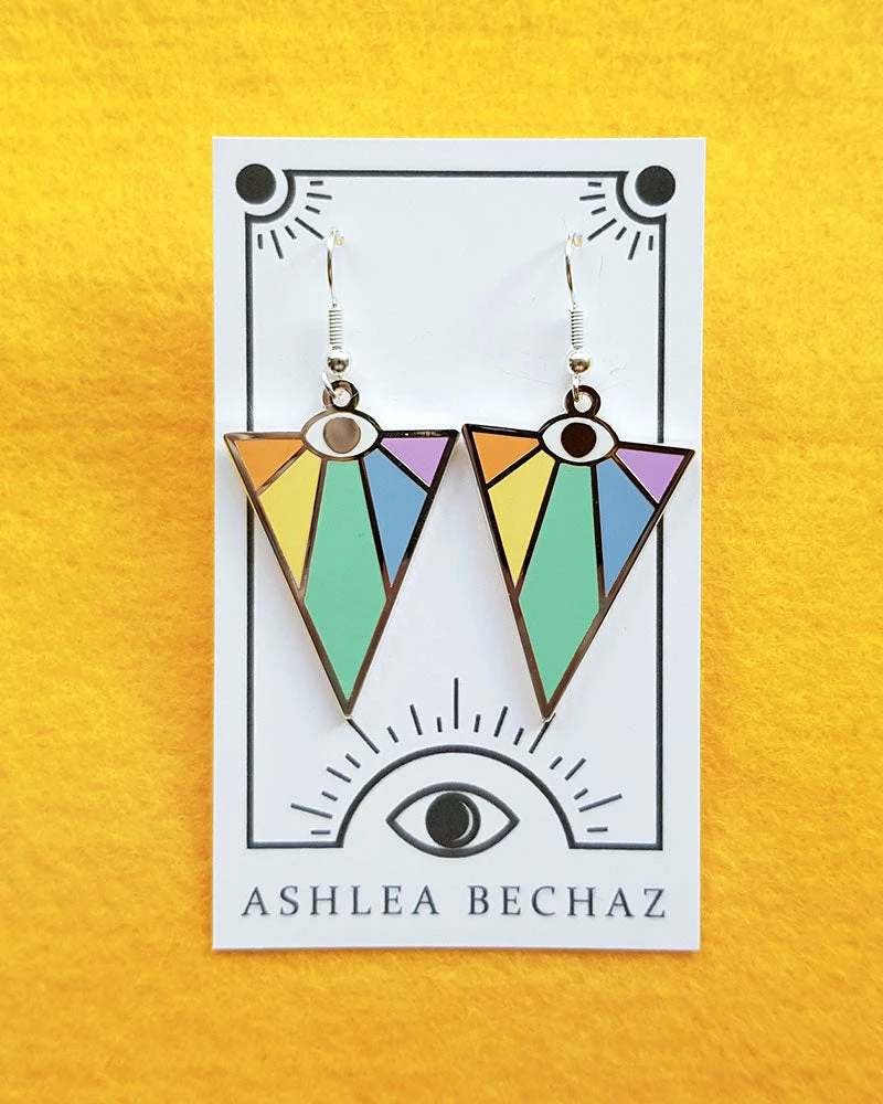 Imbue yourself with the power of light and color. See yourself in these colorful rays of sunshine. These large earrings make a statement that you’re looking for nothing but rainbows and good vibes for the day.