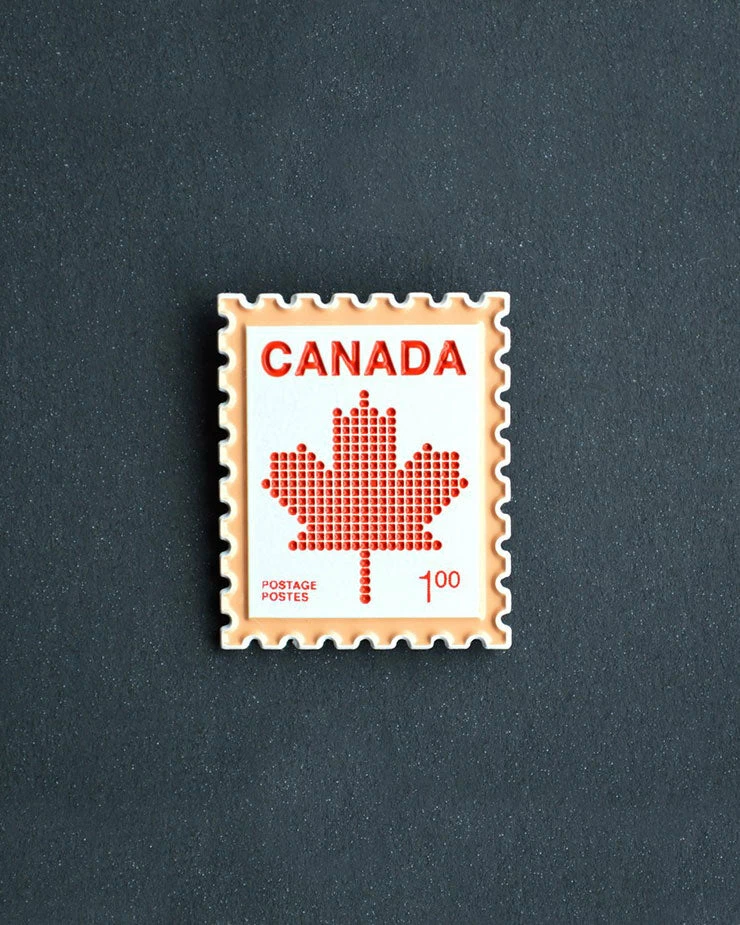 Wear your Canadian pride with this retro style $1.00 stamp.