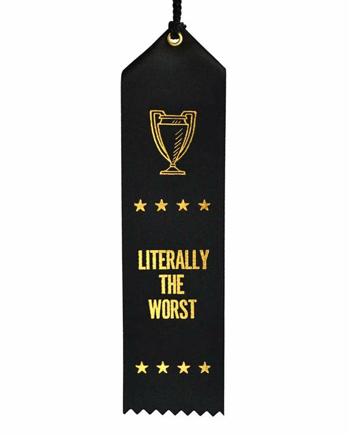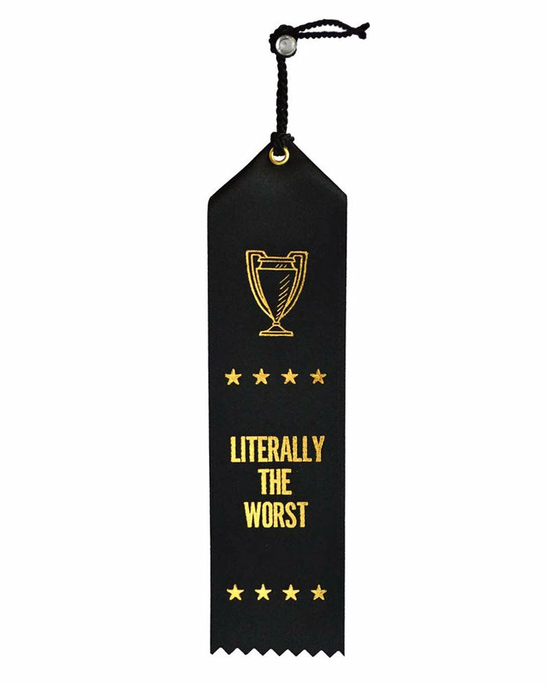 These award ribbons are a great gag gift for your loved ones who are in on the joke. Part gift, part greeting card—they are the perfect addition to any gift tied on the outside as a ribbon/bow, or simply as a present itself!