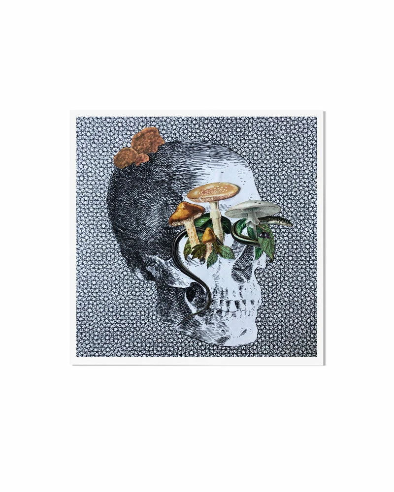 What a strange world it is that we’re all made up of bones and tissue, only to return to the Earth as dirt and fungus. We all will end up a skull with mushrooms in our eyes.