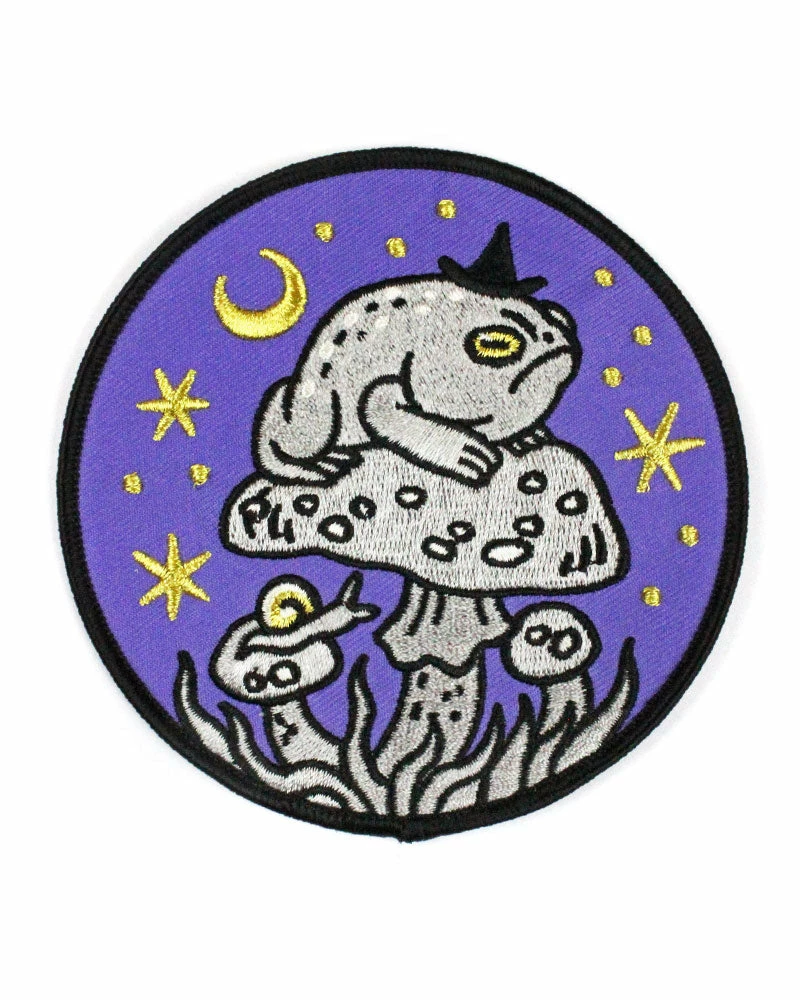 This patch design features a grumpy lil toad on a mushroom, just trying to figure out why his latest potion didn’t work. Snail apprentice isn’t offering the best help! So cute for those who relate to this curmudgeon.