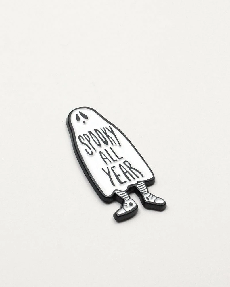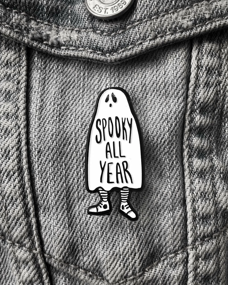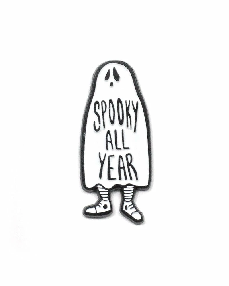 Is Halloween every day for you? This ghost is here to tell all that you love spooky things, horror movies, and being scared ALL YEAR LONG. Great for goth style, or scary film fans.