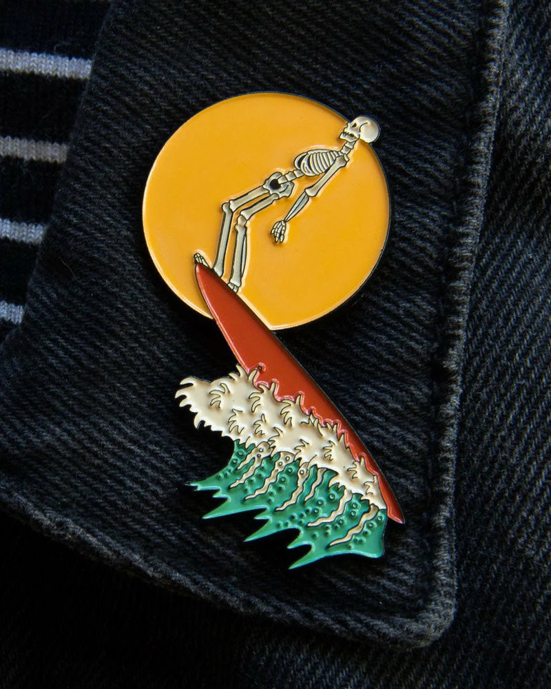 Ride them California waves into the sun. A chill as fuck pin for those that feel it in their bones.