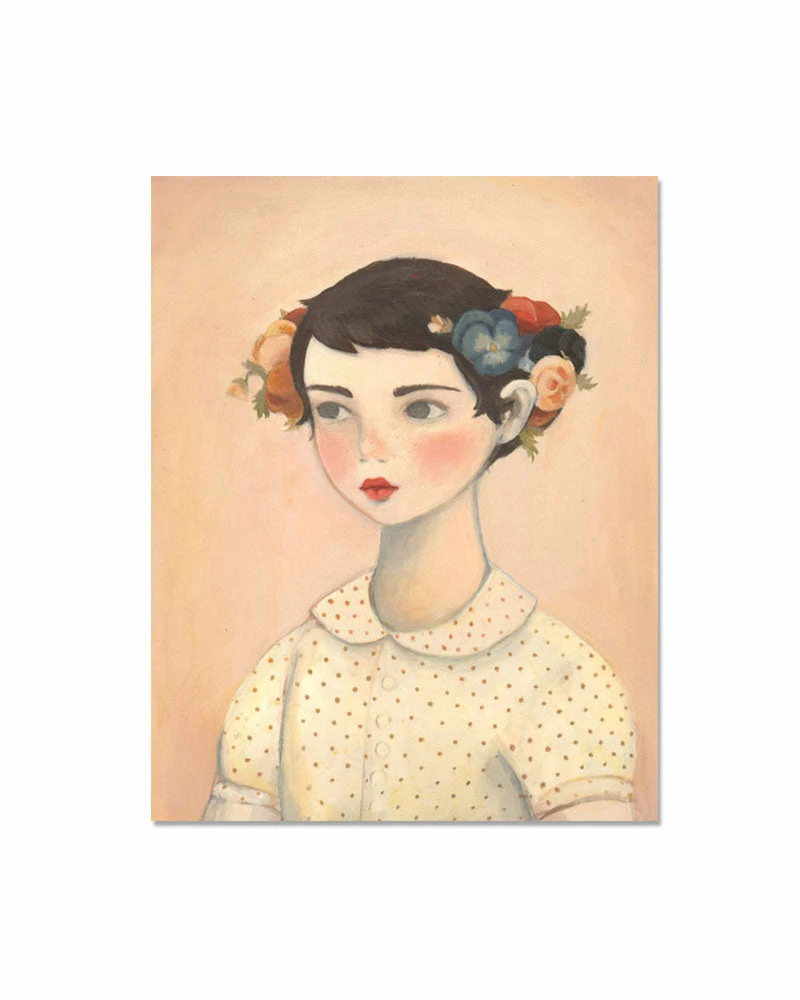 Says the artist of this piece: “I have a soft spot in my heart for pansies and violas. Their petiteness, their ubiquity, their bright eyes… I imagine a girl named Pansy would be quite prim, but with a little mischievous je ne sais quoi.”