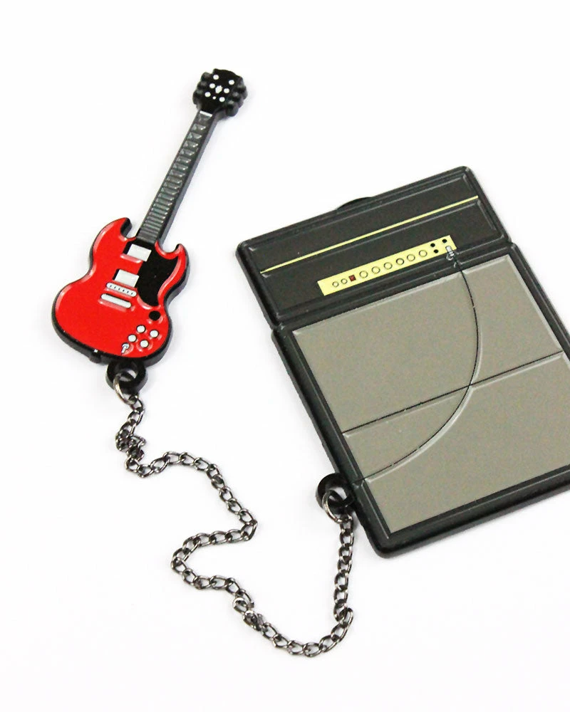 This heavy duty pin set is for heavy metal fans! Music lovers and collectors of unique pins will love this extreme chained pin pairing, connecting 2 larger pins—making for one super large pin set!