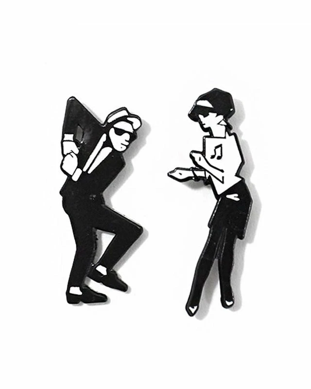 Pick it up! Pick it up! Show your love of ska with this nifty pin set of a rude boy and rude girl skanking away.