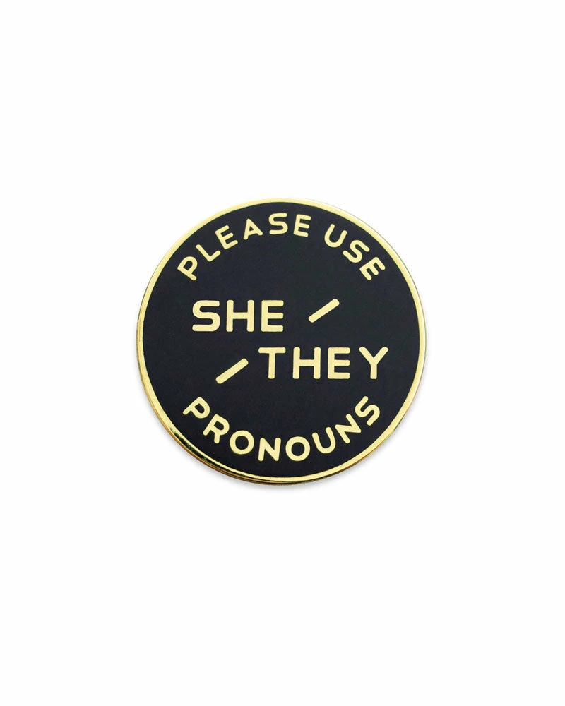 Easy-to-read She / They identifier pin that can be worn on your lapel, or any other noticeable area. Let people know how you prefer to be addressed, taking some of the awkwardness and pressure off yourself while also making a small statement.