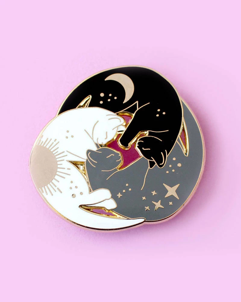 These three are ready for a cat nap! The swirling bodies represent the Sun, the Moon, and the Stars in harmony.