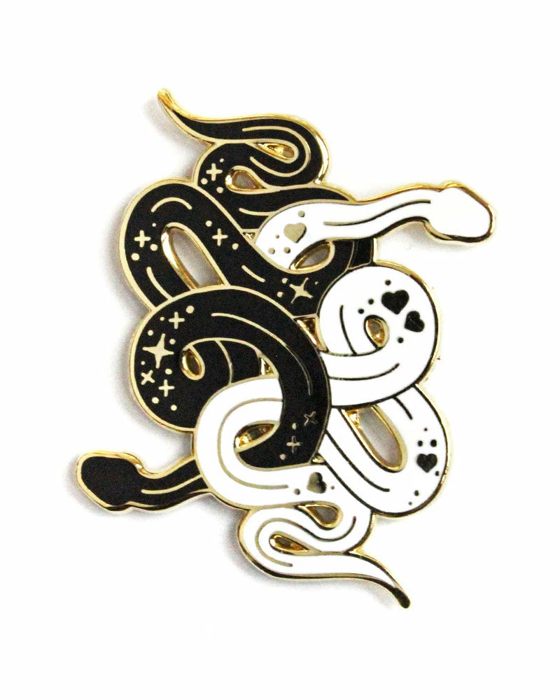 These two serpents can’t get enough of each other, so much that they’ve curled up in and out of each other. Featuring hearts and glittery stars of affection.