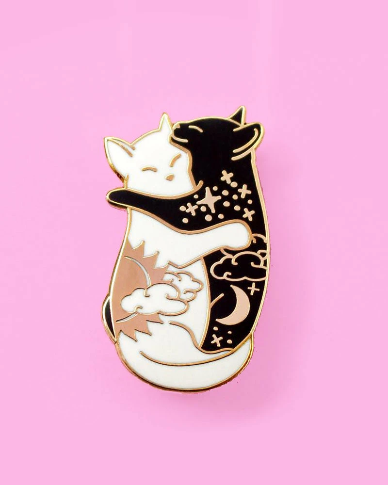These hugging cats love each other to the moon and back! Super cute for yourself, or a loved one.