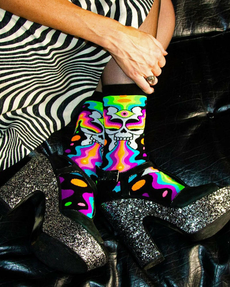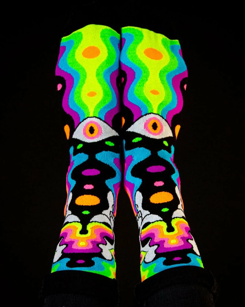 Collaborative sock release with artist Oliver Hibert, known for his mind-melting psychedelic style described as “an escape from the mundane influenced by music, colors, death, life, beauty, ugliness, cartoons, drugs, sex, mystery, and magic.”