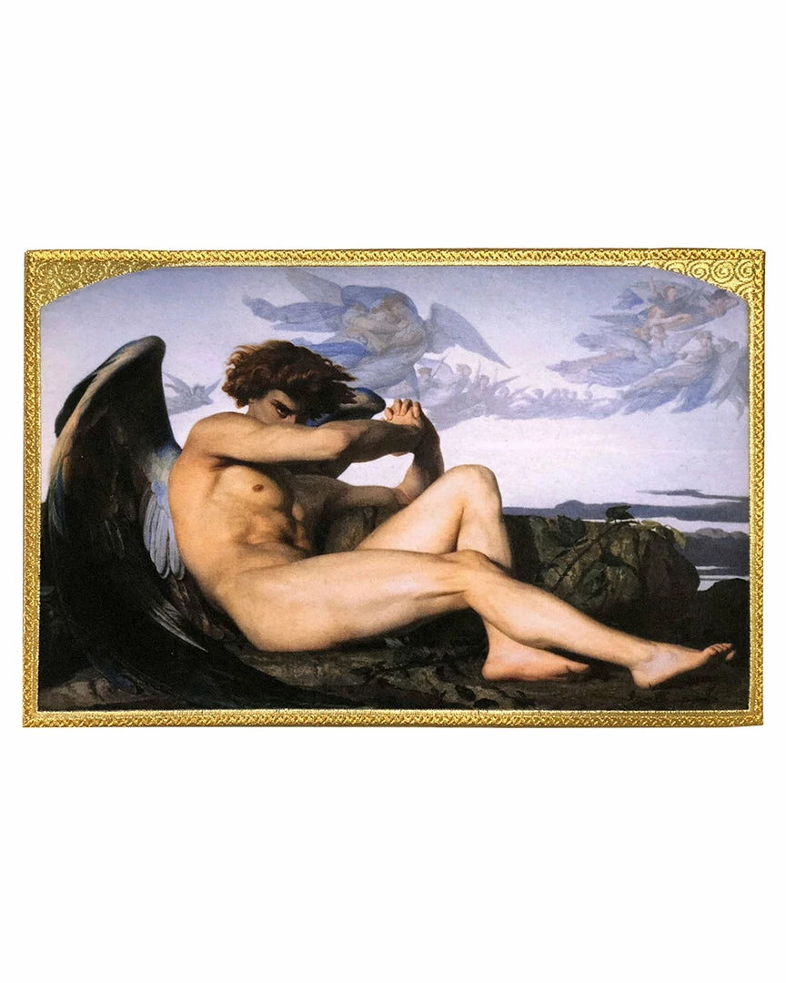 Is it weird if I’m turned on by this piece of art? A muscled angel hides his face behind his flexed arm—only a glimmer of his mysterious stare showing. A classic Alexandre Cabanel art history painting turned into a modern fashion statement patch.