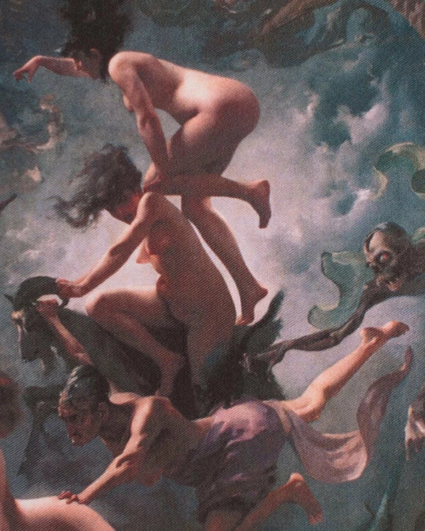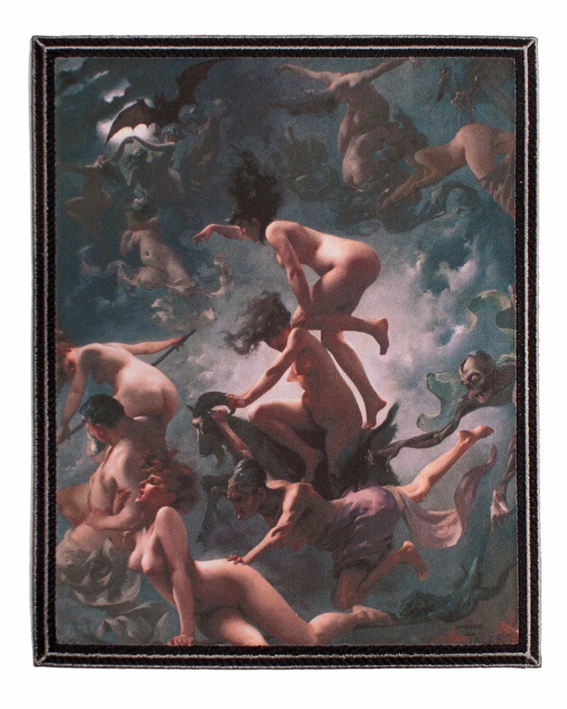 Haunting, erotic, and beautifully macabre—all things that describe you! This midnight meeting of witches and the devil is one hellscape. A classic Luis Ricardo Falero art history painting turned into a modern fashion statement patch.