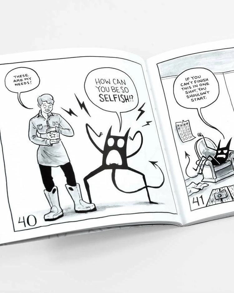Cartoonist Lucy Bellwood is beset by a tiny, petulant demon who embodies workaholism, imposter syndrome, and fear of missing out. Fed up with its constant nagging, she sets out to defang and humanize her inner critic in a series of conversational comics.