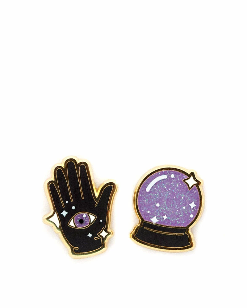 I see cute earrings in your future! This mystical pair of a protective eye in a hand and crystal ball hopefully means good fortune and luck ahead for the wearer.