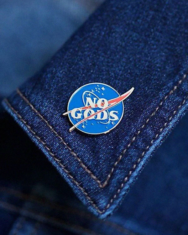 No gods, no masters. A take on the classic NASA logo, looking to our place in the stars for answers and not a deity.