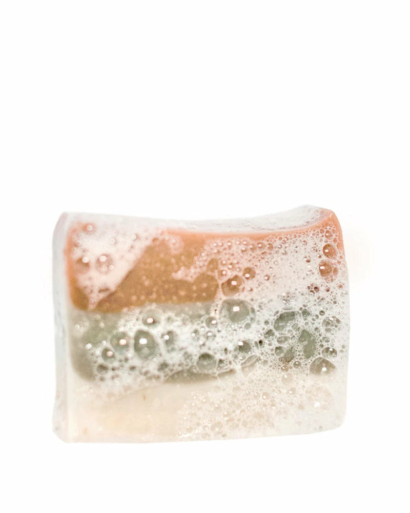 Enjoy a mild detox with this natural soap bar layered with Bentonite clay, organic rolled oats, peppermint essential oils, and a swirl of Moroccan red clay. Clay is well known to bring toxins and metals out of the body, leaving you feeling rejuvenated and clean.Â