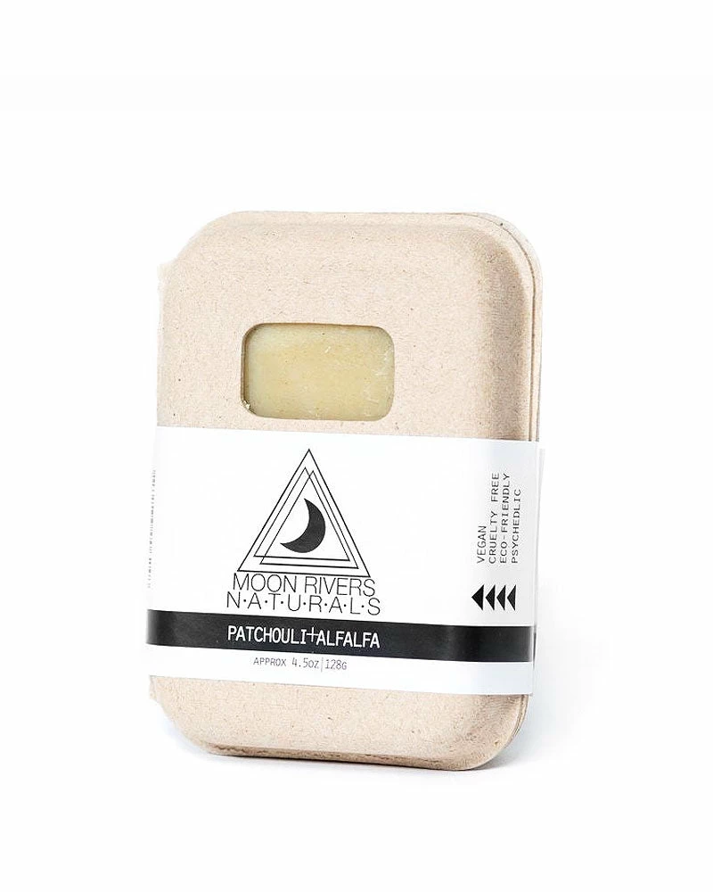 Ingredients: Saponified Oils of Coconut, Olive, and Safflower, Alfalfa Powder, Patchouli Essential Oil