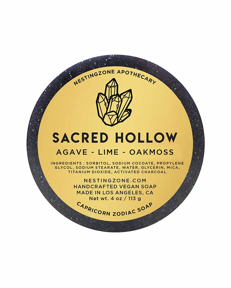 The circular shape in this zodiac-inspired soap bar is meant to help complete you, and bring you full circle. It’s a perfect birthday gift, but also a great soap for any who is drawn to it. This Sacred Hollow scent is an uplifting blend of Oakmoss and fresh Agave crafted to help anchor you and charge you with positivity.
