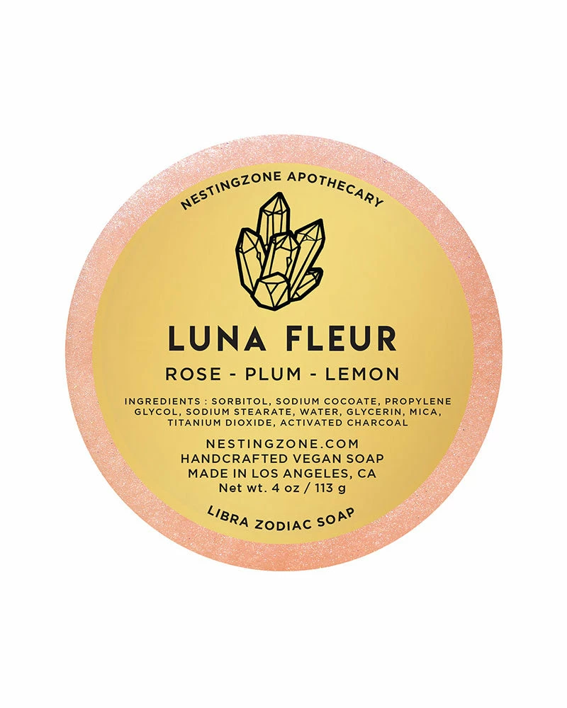 The circular shape in this zodiac-inspired soap bar is meant to help complete you, and bring you full circle. It’s a perfect birthday gift, but also a great soap for any who is drawn to it. This Luna Fleur scent is a balanced blend of Rose, Plum and Lemon created with the intention to open your heart by bringing a sense of calm and light into your life.