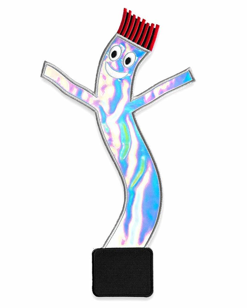 The inflatable tube man is idolized in this wearable patch. Extra large, for extra effect. Keep up the morale around yourself all the time!