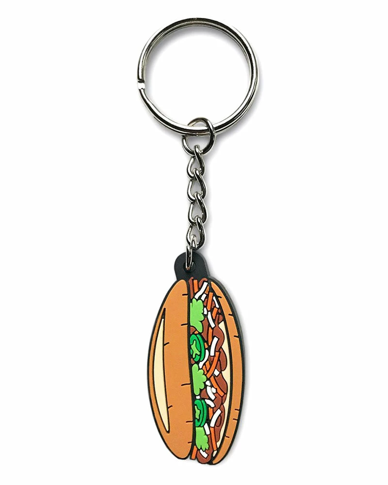 The banh mi is a staple in Vietnamese cuisine, and one of the most iconic sandwiches in the world. Nothing beats the delicious fillings piled into a soft yet crispy baguette. This keychain is based on the makers favorite bánh mì thịt nướng (grilled pork sandwich) and a must-have for all foodies.
