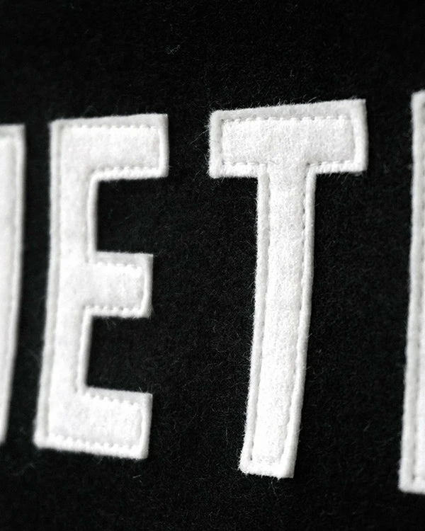 Every 22 letters (including the apostrophe!) is cut out, sewn, and stitched down.