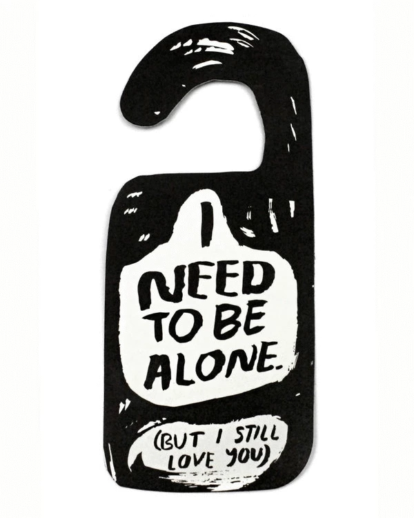Sometimes you need some alone time, and sometimes you need some love and affection. Whichever your mood, place this door hanger card on your doorknob and flip to the side you need. An easy way for introverts to speak, or just a funny way to communicate with your partner! Great for studies and offices, even bedrooms when needed.