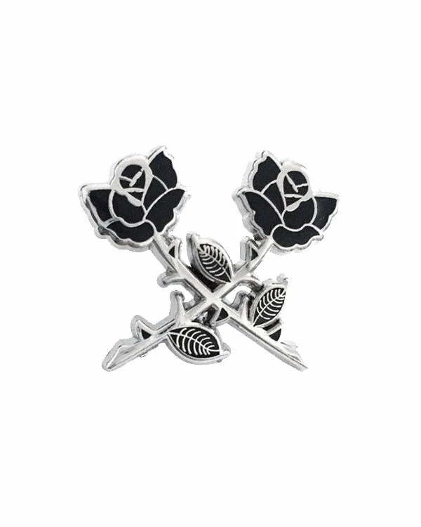 Two crossed roses for two star-crossed lovers. Black roses like the night.