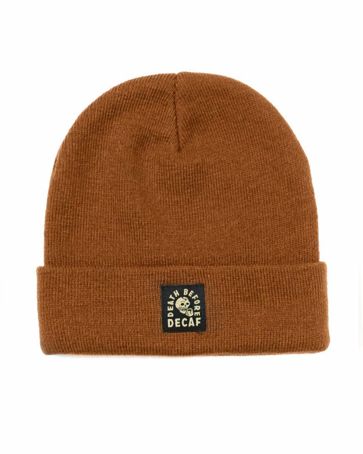 Grab a hot cup o joe, and put on this beanie to warm up during cooler weather. The color is even a “medium roast” brown!
