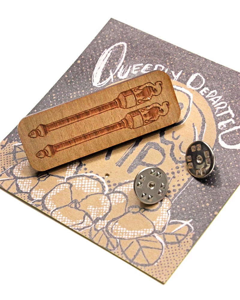 Part of a “Graveyard” series of designs inspired by tombstone imagery, flamed torches are quite common in cemetery lore. Inverted torches represent the extinguished light of life. If wear the pin as an upright torch, it represents the bright flame of life!