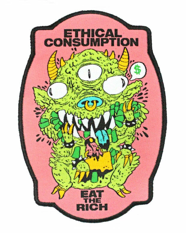 This monster goblin says EAT THE RICH.