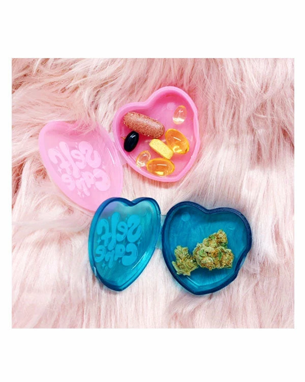 A cute way to store your medication, vitamins, CBD, cannabis, or other small items that are part of your daily self-care routine. This heart-shaped boxes are small, lightweight and compact—perfect for several pills, or a couple grams of flower. Easy for traveling or to throwing in your bag for everyday use, they also serve as a small reminder to make sure you’re taking care of yourself!Â