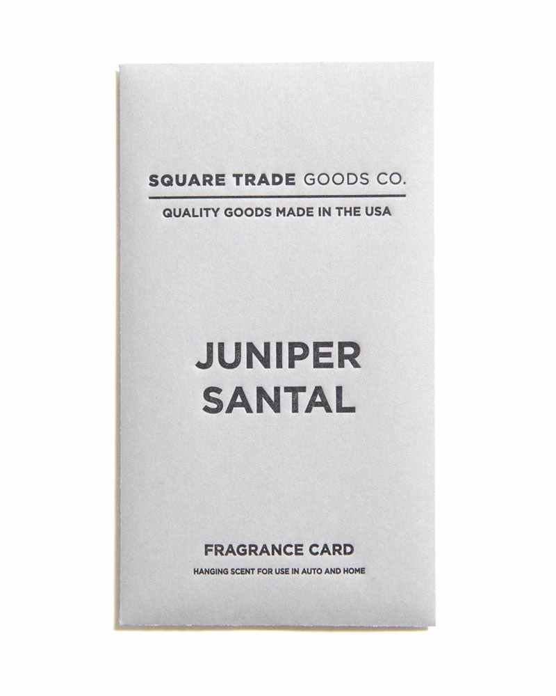 An update to the classic air freshener, this fragrance card is sleek and discreet. It’s clean design will blend into any bedroom, car, or bathroom. The Juniper Santal scent is crisp and refreshing. Juniper gives gin it’s unique flavor—mix it with pinon and sandalwood and this scent is fresh and clean, but grounded.