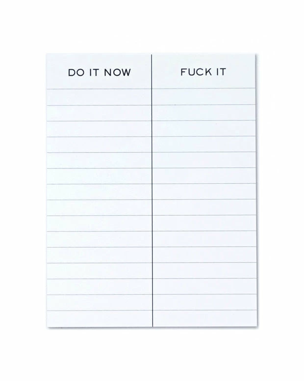 This memo pad is separated into two columns: Things you have to do, and things you know you’ll never get to.