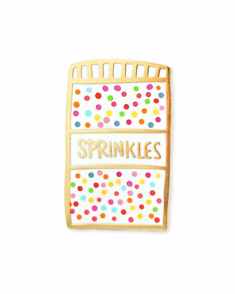 Sprinkles make everything better! Keep some colorful joy with you at all times by attaching this pin to your lapel, bag, or purse.