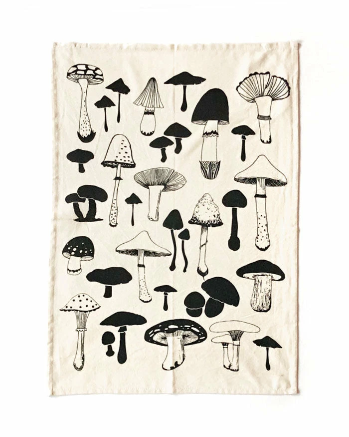 Tea towels (AKA kitchen towels) are traditionally used for drying dishes, wiping hands, or left hanging near countertops—and still can be! However, the large-scale size and lightweight material has been appropriated by many for use as wall hangings in the modern era.