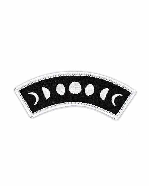 This top rocker style patch shows the phases of the moon, and will fit perfectly on an upper sleeve of a jacket.