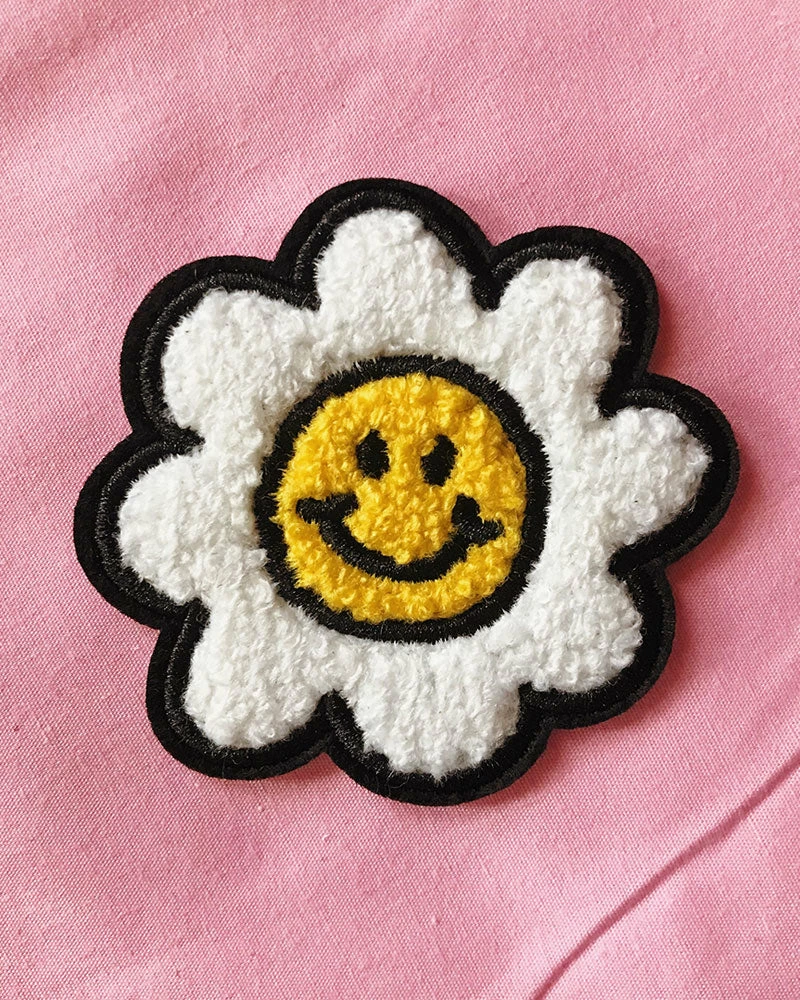 Shiny, happy, fuzzy flower reminiscent of the hippie generation. Attach this patch to your jeans, jacket, or bag and keep the peace.