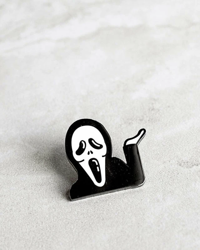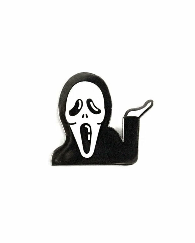 A 90s pop culture throwback pin with a modern, emoji twist. For any Scream movie lovers, or just anyone that likes meta, irreverent humor. This pin is horror and fun—just like it’s inspiration material.