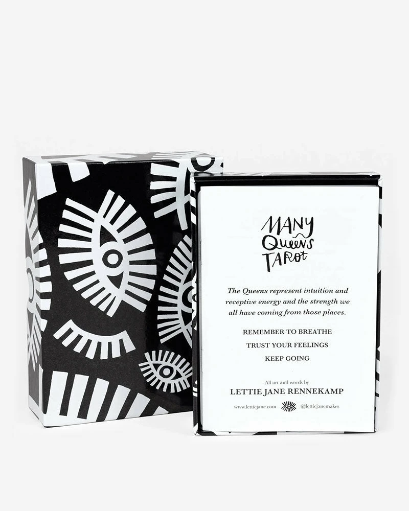 Portland, Oregon artist Lettie Jane Rennekamp created this tarot deck to help define a more inclusive definition of femininity, beauty, and body image. The characters in this deck blend the boundaries between gender, sex, family, friendship, shape and size. The Queens represent intuition and receptive energy and the strength we all have coming from those places.