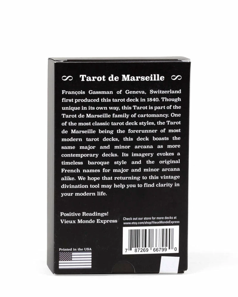 One the most classic tarot deck styles, the Tarot de Marseille being the forerunner of most modern tarot decks, this deck boasts the same major and minor arcana as more contemporary decks. Its imagery evokes a timeless baroque style, and the original french names for major and minor arcana alike.
